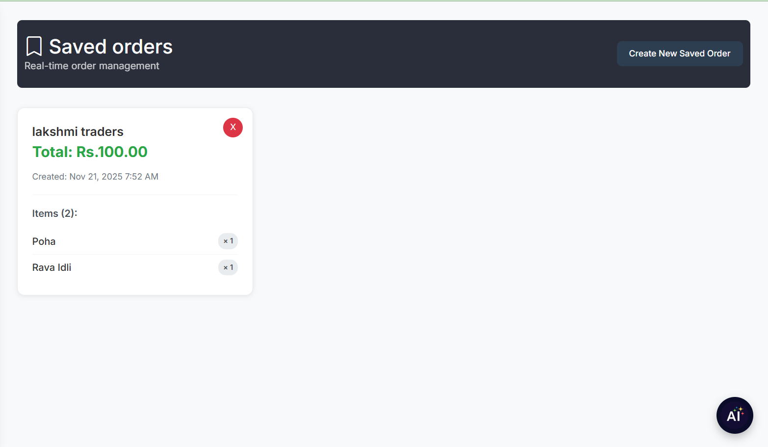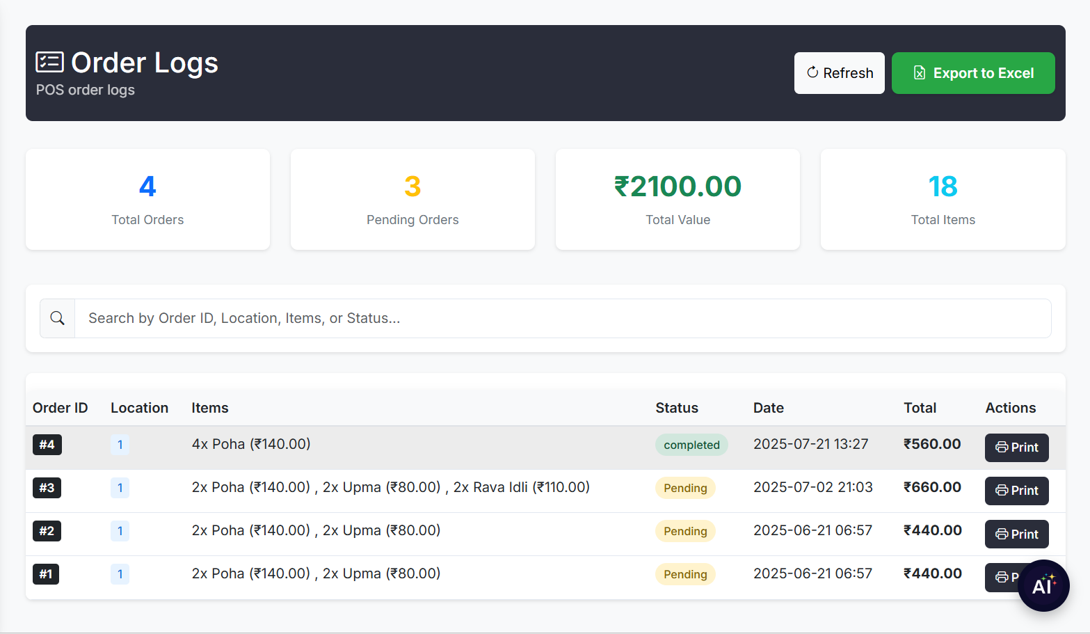 - Order ID – Unique bill number for tracking and reprinting.